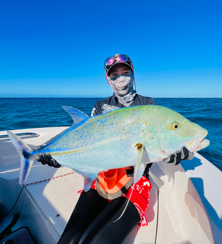 Aloha Fishing Hawaii specializes in topwater lure fishing for GT 'giant trevally'. You can expect huge blow ups and crazy action packed attacks from these top predators of the reef. These fish are even known for tracking prey above water and eating flying birds out of midair. GT popping you'll be casting big poppers and stickbaits over reef structures and underwater drop-offs in the 15 to 120 foot range. Usually we'll be drifting, casting over and over awaiting for a giant explosion on our topwater lures. When your time comes and you get blown up on your popper you'll have to set the hook really hard to engage the hooks into the hard lips of these big fish. Once the fish is hooked they'll take off straight down to the reef structure and underwater caves like a freight train. You'll have to give it your all to stop and boost these giant trevally from cutting your 80-100 pound test line on the reef. Once the fish is in the boat only then you'll feel the satisfaction and glory these fish bring to any fisherman who is lucky enough to hook and land these amazing powerful fish. Defiantly one of the most fun and exciting topwater lure fishing you could ever do. That's why fishermen and fisher women from around the world has become in love and obsessed with catching these wild fish. Come aboard and join me for half day or full day trip on the hunt for the Giant Trevally.